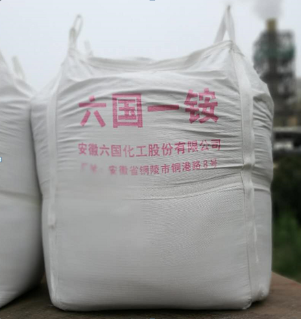 3、印刷字样:吨袋前后写上”英国威廉希尔公司官网一铵”四个大字,下面写上厂址,字体颜色为红色字体。