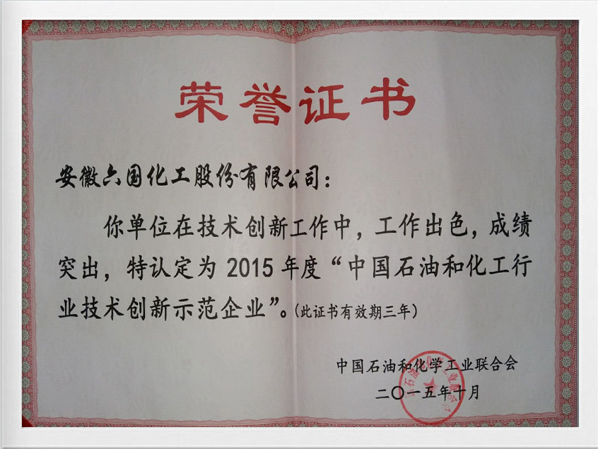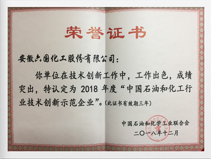 中国石化行业技术创新示范企业证书2018年